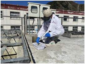 吉隆鎮(zhèn)污水處理廠化驗(yàn)員在進(jìn)水口、生化池、二沉池以及出水口四個(gè)點(diǎn)分別采集樣品。